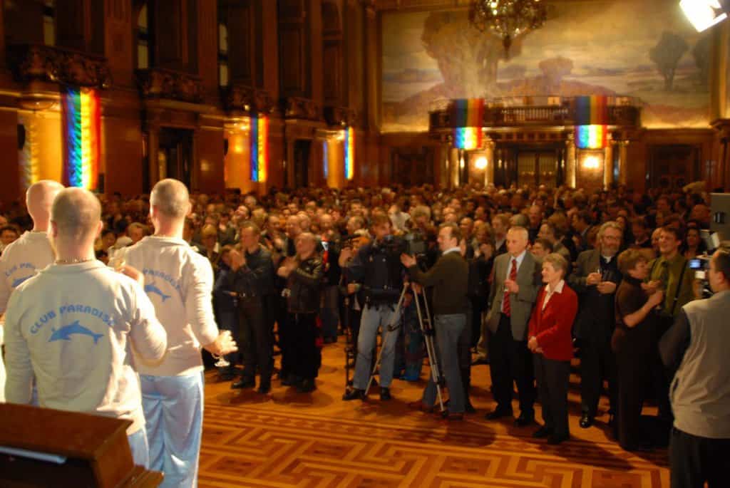 Am 28. Januar strömten mehr als 1.100 Gäste ins Rathaus, um beim legendaren Neujahrsempfang dabei zu sein. Ob lesbisch, schwul, hetero oder irgendwie dazwischen, dieser Empfang sucht in Deutschland seines gleichen.Viele kommen, um unterm Regenbogen zu feiern und nach der Musik der Wunderbar zu wippen (tanzen ist leider schwierig, wegen des alten Gemäuers…). Es ist eben kein langweiliger Stehempfang in Dunkelblau, sondern die bunteste Veranstaltung nach dem Christopher-Street-Day…