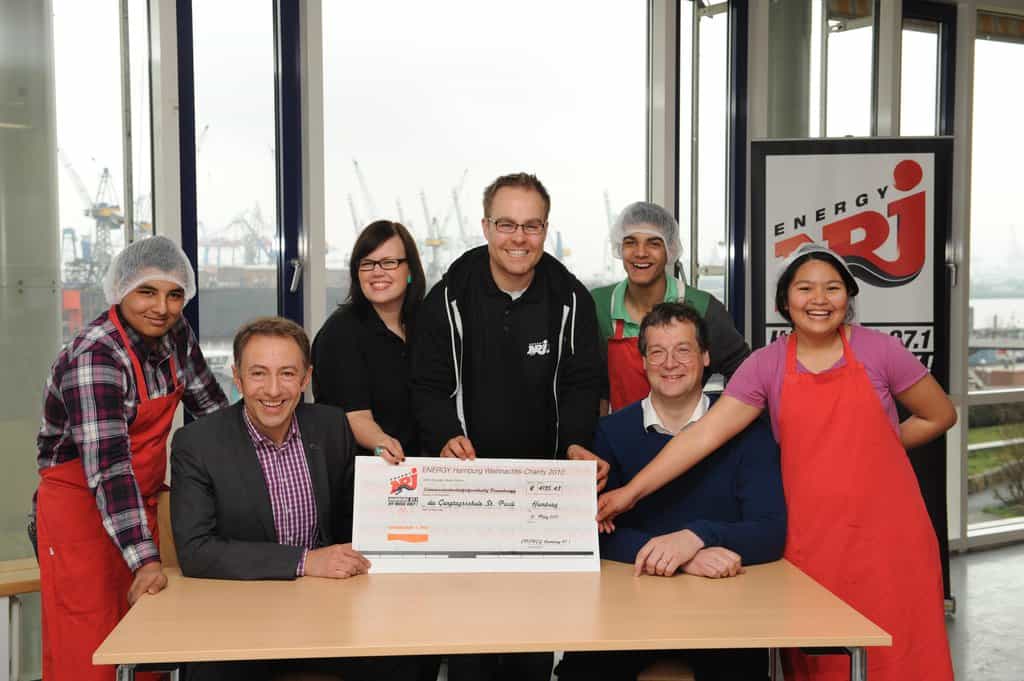 Heute haben die Moderatoren des Radiosenders Energy der Ganztagsschule St. Pauli einen Scheck in höhe von 4.000€ für das Kantinenessen überreicht. In der Vorweihnachtszeit haben Moderatoren und Prominente auf den Weihnachtsmärkten den Pfand der Glühweinbecher als Spende für das Essen der Kinder gesammelt. Nicht viele Kinder der Ganztagsschule St. Pauli erhalten von ihren Eltern das Geld für den Mittagstisch in ihrer Schule. Dabei kochen die Kinder ihr Essen zum großen Teil selbst in der Lehrküche der Schule. Doch natürlich kosten die Zutaten und die Aufbereitung etwas Geld, so dass sich die Schule immer wieder um Sponsoren und Spenden kümmern muss, damit alle Kinder mittags etwas zu essen bekommen.