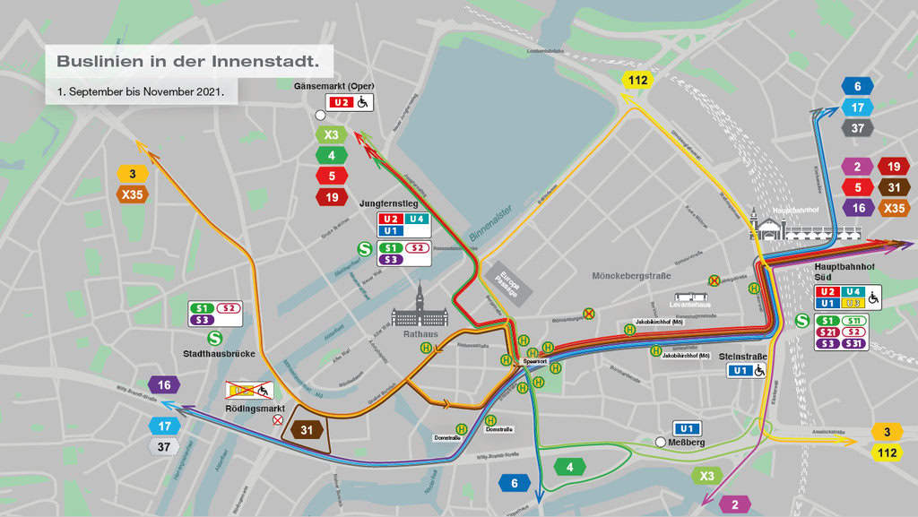 Aber auch durch die Mö fahren wieder einige Busse, zumindest in eine Richtung. Die Steinstraße bleibt uns als Busstraße weiter erhalten, dazukommt dann noch die Domstraße Richtung Willi-Brandt-Straße/Hafencity.