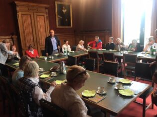 Da die Plätze begrenzt sind und das Interesse meist größer ist, bitte ich um Anmeldung zum Doppelpack ‚Rathausführung&Austausch‘ oder nur um den ‚Austausch‘ mit Kaffee und Kuchen. Freue mich auf einen spannenden Nachmittag mit Euch in unserem Rathaus! Anmeldefrist ist der 13. November.