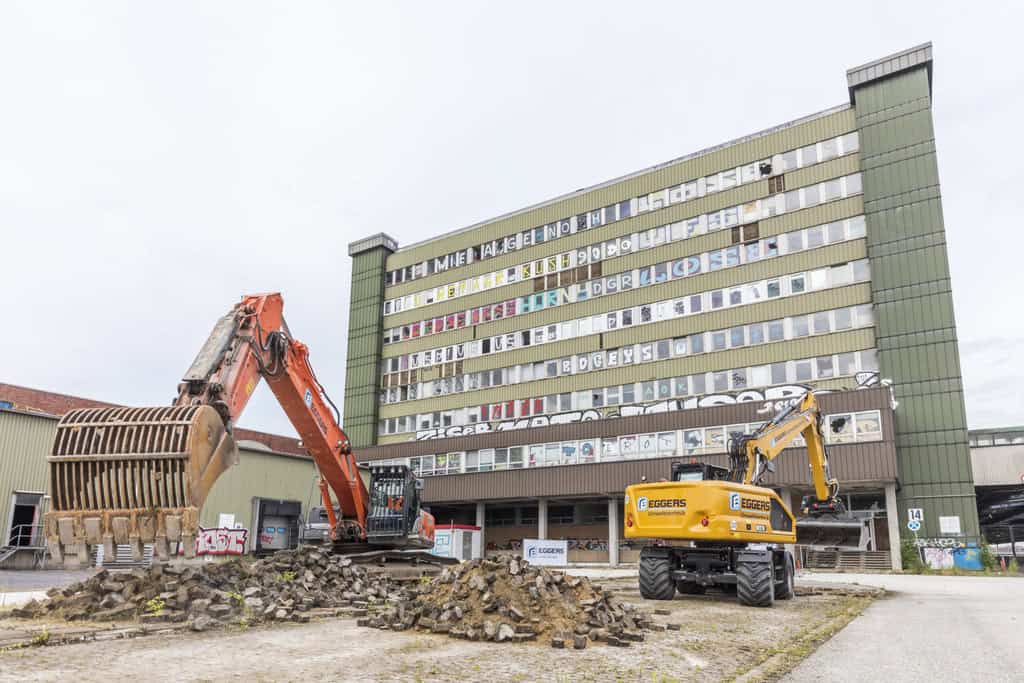 Die mal größte Lagerhalle (Überseezentrum) seiner Zeit (1967) auf dem Kleinen Grasbrook wird seit Juli abgerissen, um Platz für den...